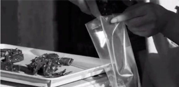 “以假乱真的假牛肉干是如何生产出来的?”经过侦查发现,这个制造假牛肉干的生产窝点以低价购买大量的风干鸭肉干,未经加工,直接由人工切割成小块,再以250克/袋进行分装。